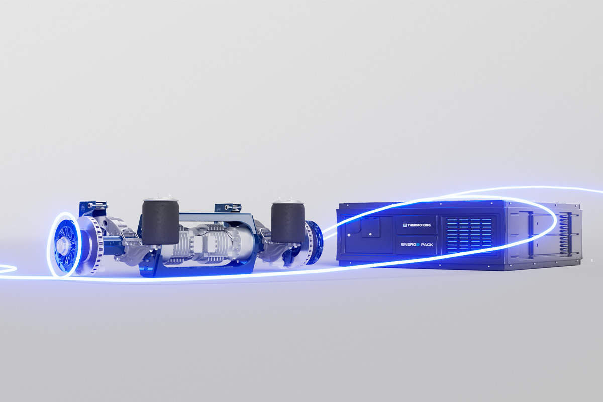 As an enhancement to unit electrification, tapping into innovative power sources—such as AxlePower—extends the range of your fleet. AxlePower is a trailer solution that combines an ePower axle with Thermo King’s Energ-e Pack and Smart Power Management. The system recovers energy from driving and braking, storing it in the Energ-e Pack battery to power the refrigeration unit. No emissions, and no charging stops are necessary in many cases.
