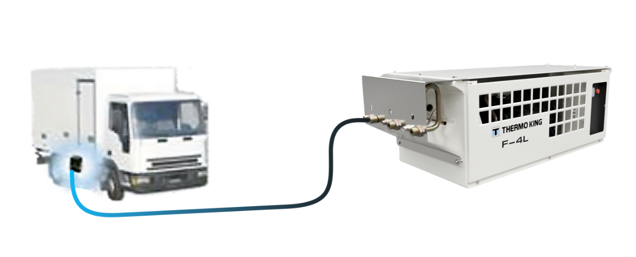 F-condenser units are mounted over the cab. FL-condenser units can be mounted underneath the truck, or used as a “Cool Station”.